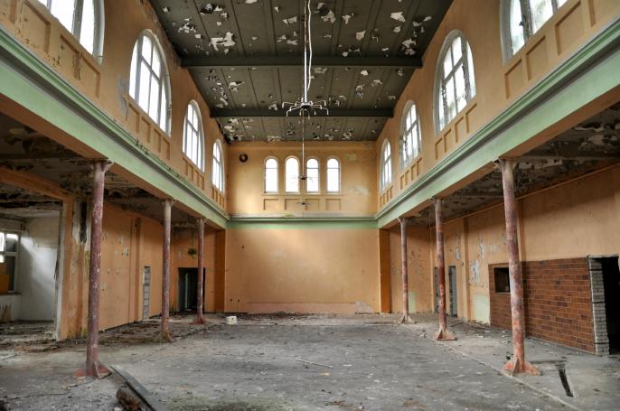Früher war dies das beliebte Ausflugslokal der nahegelegenen Ostseebäder und der Tanzsaal des kleinen Ortes. Die Zeit der eleganten Tanzveranstaltungen ist lange vorbei. Sehr lange.