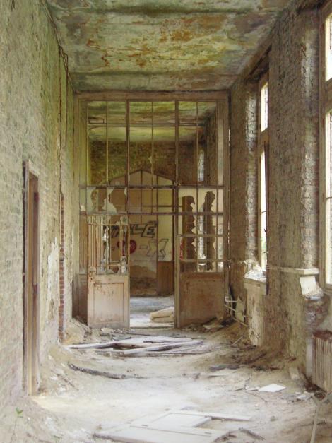 Lange Flure im noch begehbaren Teil des Mittelflügels;